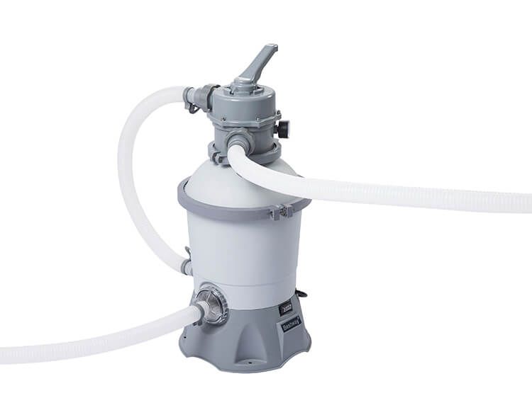 Bij dit Power Steel zwembad wordt een zandfilterpomp meegeleverd. Deze pomp zorgt ervoor dat het zwembadwater in beweging is en filtert alle viezigheid eruit. De zandfilterpomp heeft een capaciteit van 3028 L/uur. In 4 uur heeft de pomp het totale zwembad gefilterd. Het filterbed moet je vullen met glasparels of filterbolletjes. Het is namelijk het filtermateriaal wat ervoor zorgt dat alle vuildeeltjes daadwerkelijk uit het water gefilterd worden. In de Bestway zandfilterpomp 3028 L/uur moet 450 gram filterbollen of 10 kg glasparels. (Een filtermatieriaal wordt niet standaard meegeleverd. Vergeet deze dus niet bij te bestellen!)