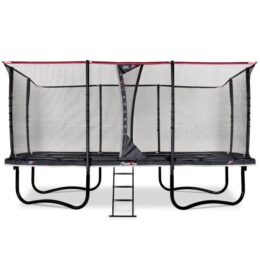 Net als bij iedere staande trampoline van EXIT Toys wordt ook bij de EXIT Allure Premium standaard een veiligheidsnet meegeleverd. Bij dit Deluxe veiligheidsnet is aan alles gedacht. Het Deluxe veiligheidsnet is voorzien van een kindvriendelijke ingang door de overlappende deur. Als ouders hoef je je daarom geen zorgen te maken dat kinderen bij een missprong van de hoge trampoline af kunnen vallen. Het net staat altijd mooi rond en gespannen door glasfiberringen aan zowel de boven- als onderkant. Het veiligheidsnet is hoogwaardig afgewerkt, zelfs bij het extra dikke schuim rondom de palen is dat goed terug te zien.