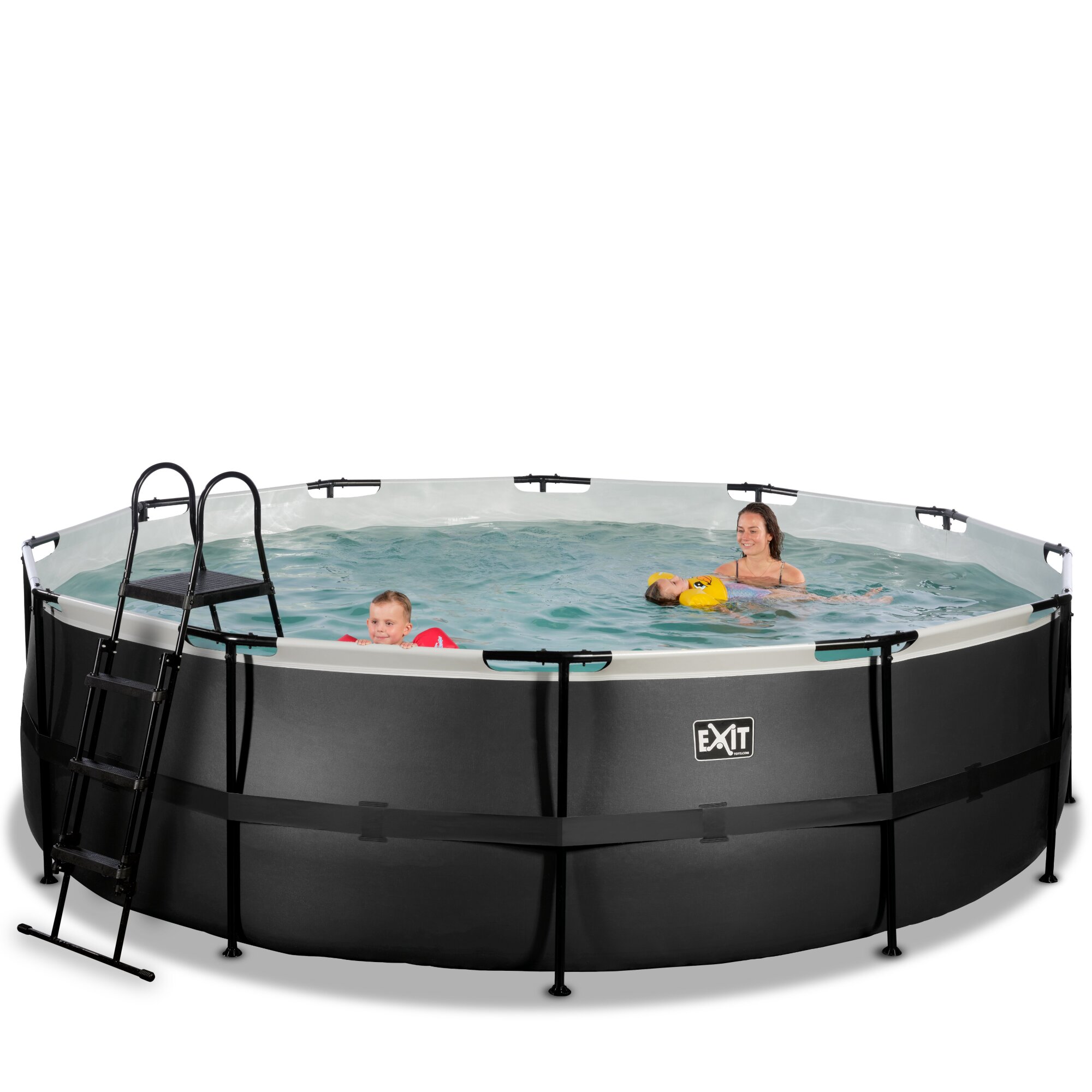 Het EXIT Black Leather zwembad Ø 488 cm is een rond frame zwembad. Bij dit zwembad wordt standaard een zandfilterpomp en een zwembadtrap meegeleverd. Het frame zwembad biedt genoeg ruimte om heerlijk op een luchtbed te dobberen. Het frame is voorzien van een poedercoating om roest tegen te gaan. De sterke liner is mooi afgewerkt en door de unieke “Black Leather” look sluit deze mooi aan bij elke tuin!
