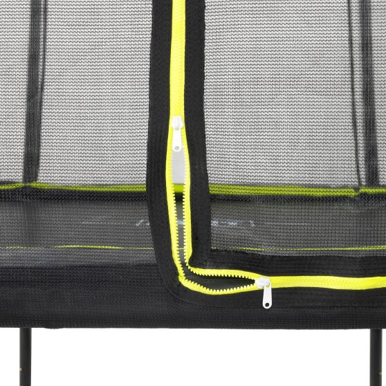 Net als bij iedere staande trampoline van EXIT Toys wordt ook bij de EXIT Silhouette standaard een veiligheidsnet meegeleverd. Bij dit veiligheidsnet is aan alles gedacht. Doordat de staanders gebogen zijn, staat het net extra strak gespannen en kunnen de kinderen niet in contact komen met de staanders. Als ouders hoef je je daarom geen zorgen te maken dat kinderen bij een missprong van de trampoline af kunnen vallen. Het kindvriendelijke veiligheidsnet is voorzien van een fluorescerende groene ritssluiting die goed opvalt, zodat je direct kunt zien of de rits goed is gesloten.