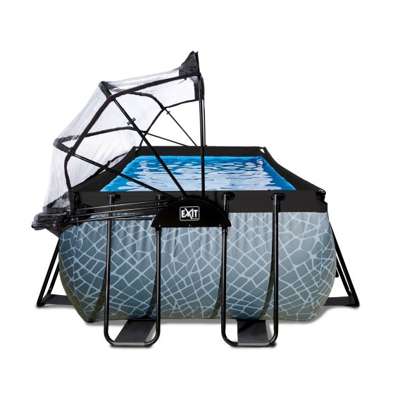 Het EXIT Stone zwembad 400 x 200 x 100 cm is een rechthoekig zwembad. Bij dit zwembad wordt standaard een zandfilterpomp en een zwembadtrap meegeleverd. Het frame zwembad biedt genoeg ruimte om heerlijk op een luchtbed te dobberen. Het frame is voorzien van een poedercoating om roest tegen te gaan. De sterke liner is mooi afgewerkt en door de unieke “Stone” look sluit deze mooi aan bij elke tuin!